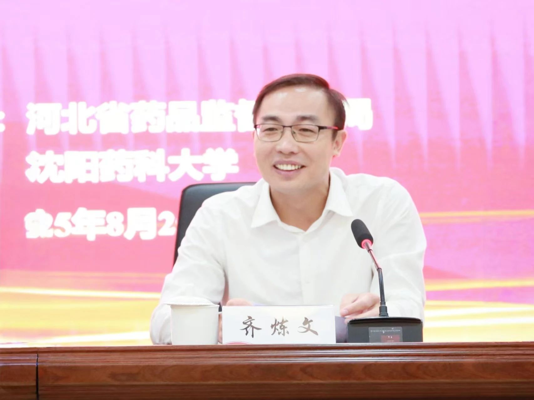 开班仪式上,齐炼文代表学校向王峰山一行的到来表示热烈欢迎,并对河北省药品监督管理局对学校的信任和支持表示衷心感谢。他赞誉了河北省药品监督管理局的社会责任和监管理念,在推动医药事业高质量发展方面作出的重要贡献。他希望,双方以此次合作为契机,以推动学科建设与国家战略同频,以促进监管需求与人才培养同向为共同目标,在“校局共建”和“人才共育”等方面长期合作,为守护药品安全,推动国家专业技术人员培养和医药事业蓬勃发展贡献力量。